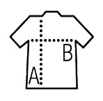 3. Sélectionne la Largeur de la poitrine correspondante sur le guide des tailles. La Hauteur du T-shirt (B) est moins importante.
